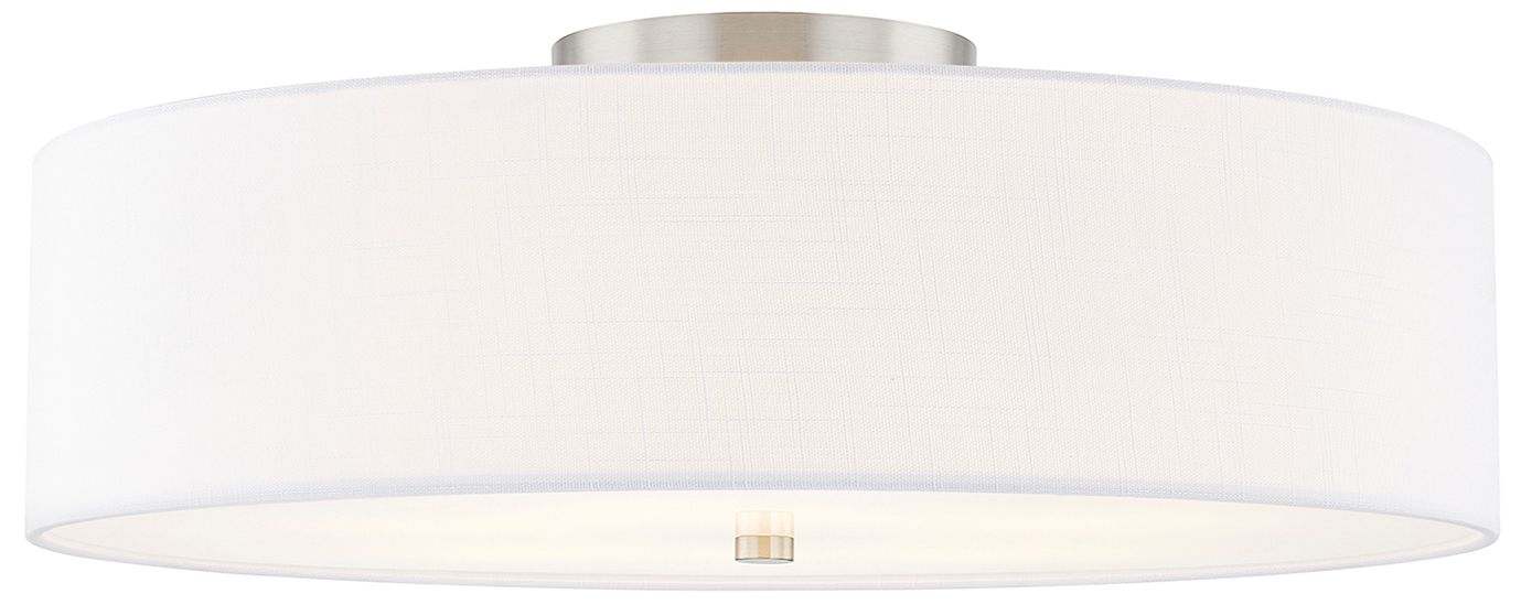 Textile 30"W Classic Drum Brushed Nickel Semi-Flush With White Linen S