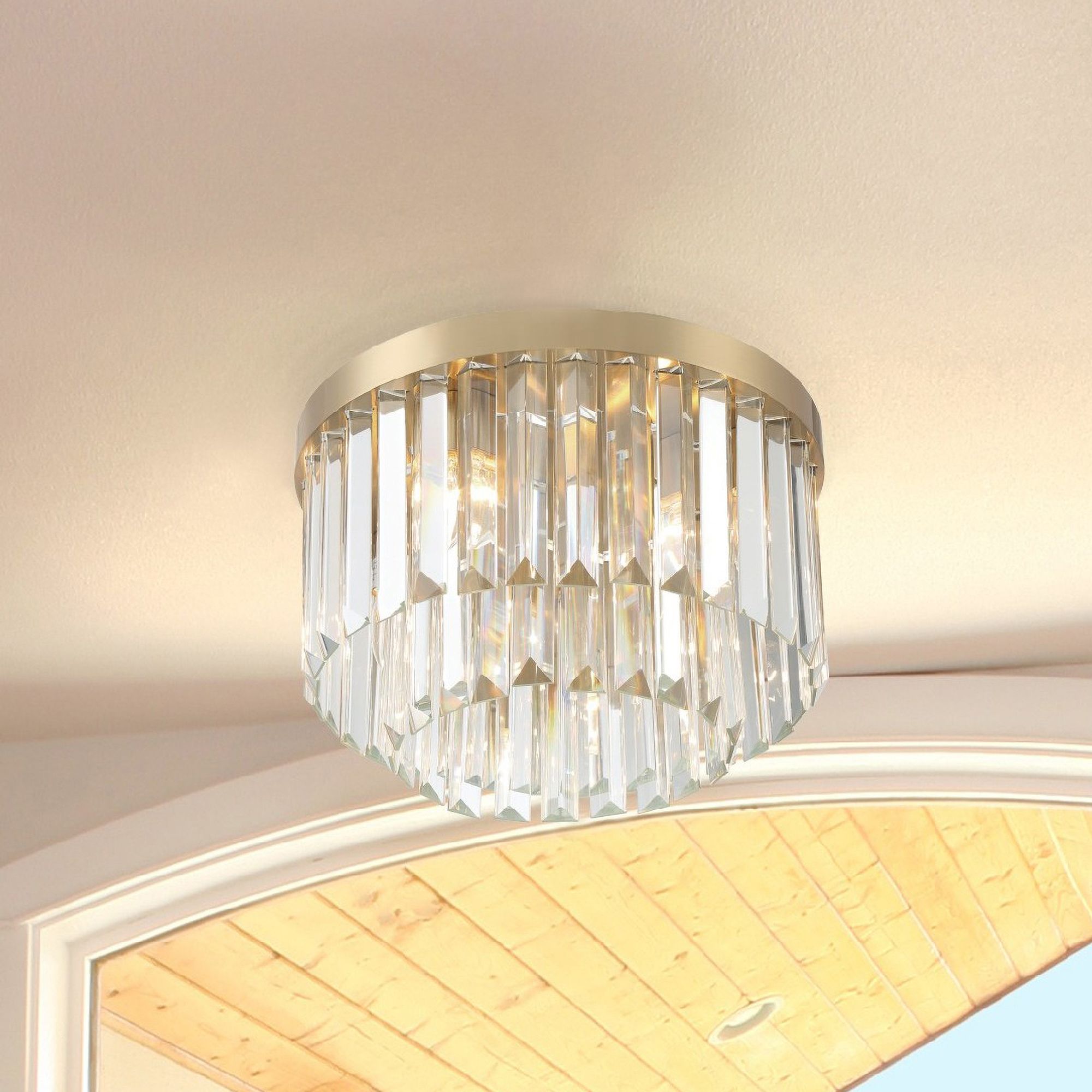 Schonbek Melange 8" Wide Brass and Crystal Modern LED Ceiling Light