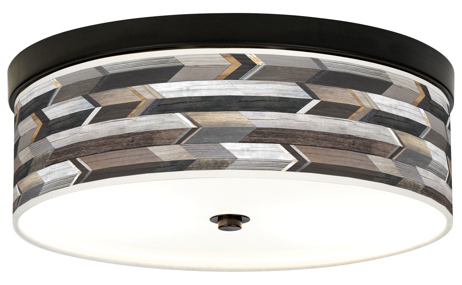 Giclee Gallery Woodwork Arrows Pattern 14" Bronze LED Ceiling Light