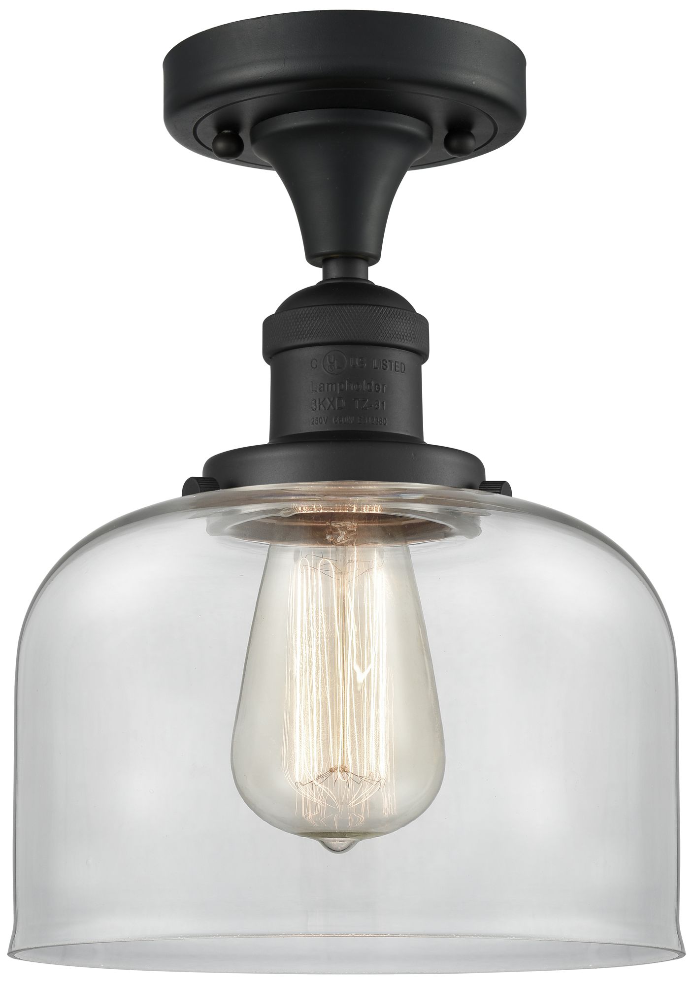 Bell 8" Wide Matte Black with Clear Glass LED Ceiling Light