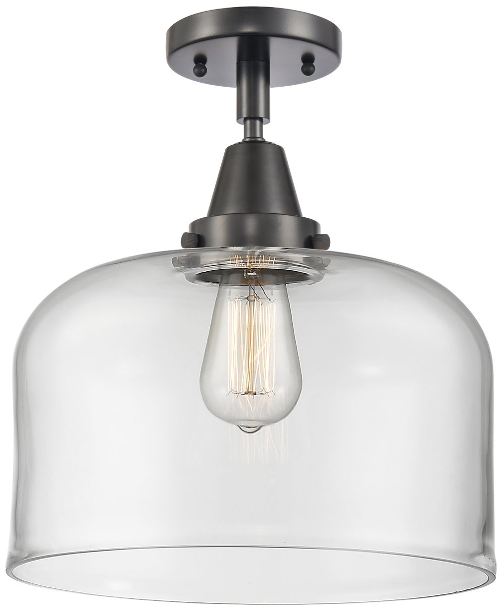 Bell 12" Wide Matte Black and Clear Glass LED Ceiling Light