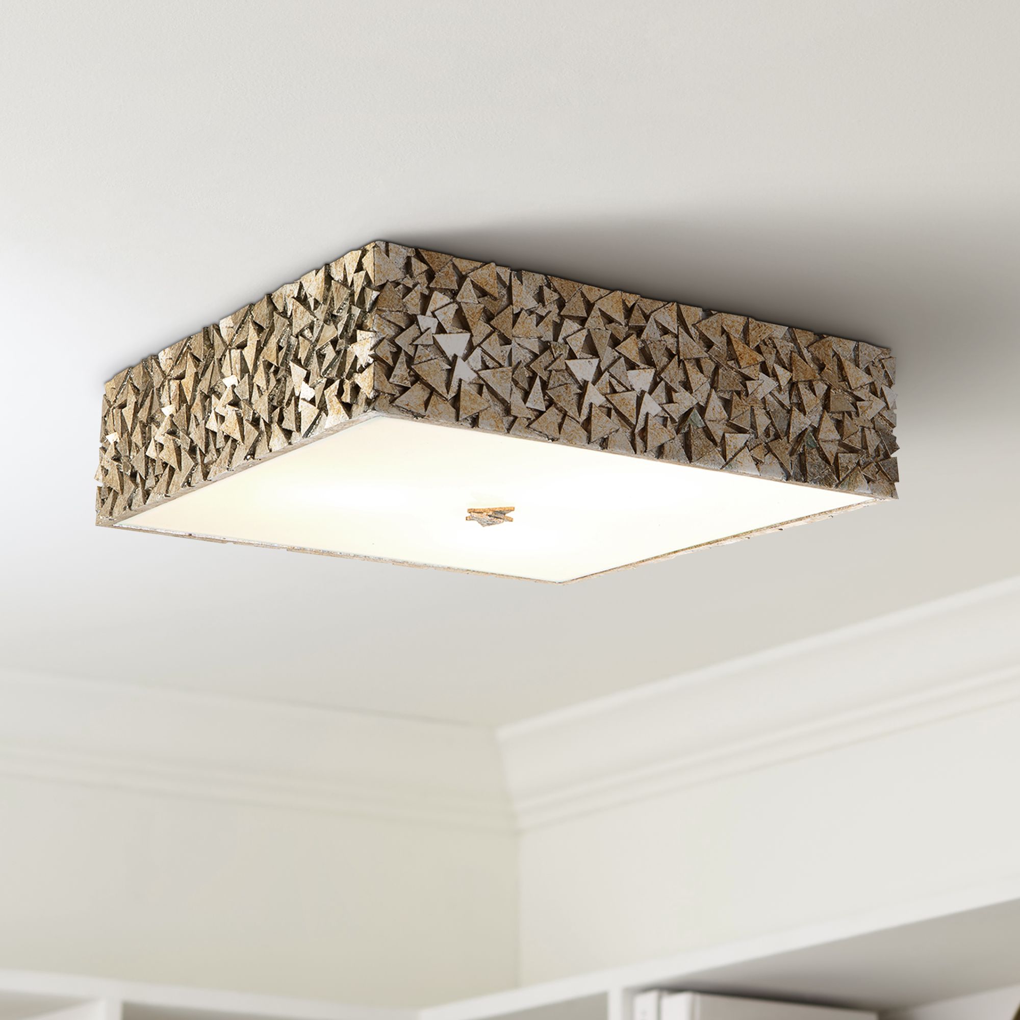 Lucas McKearn Mosaic 16" Wide Antique Silver Leaf Square Ceiling Light