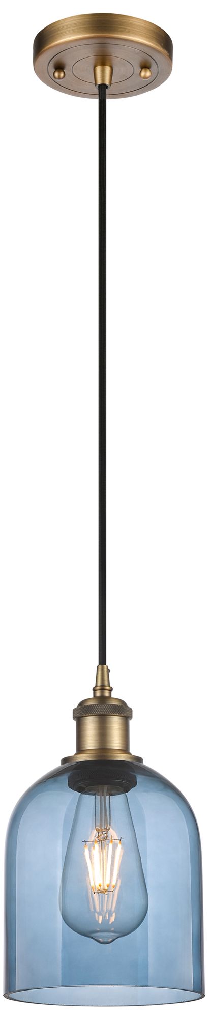 Ballston Bella 5.5"W Brushed Brass Corded Mini Pendant w/ Blue Shade