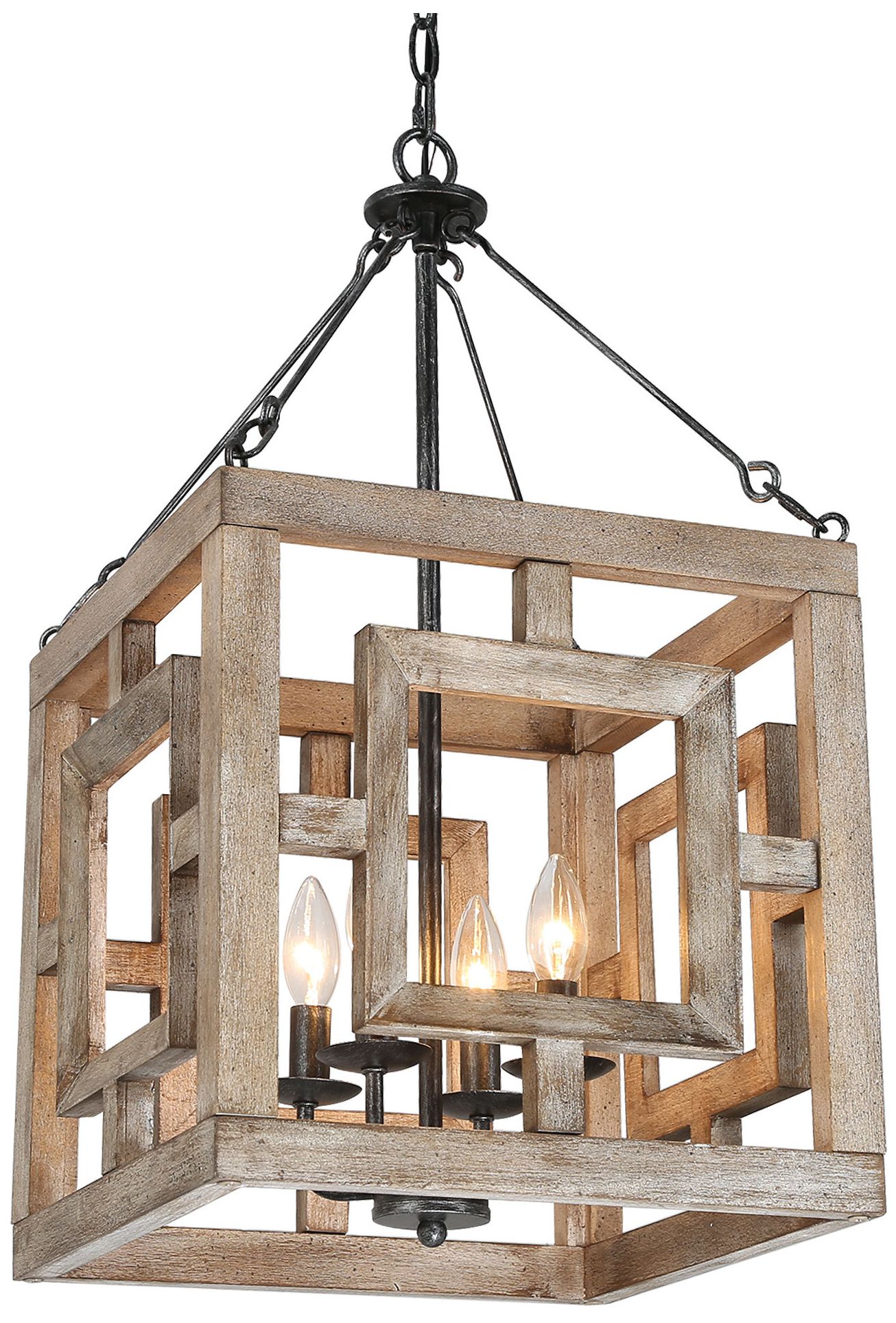 Follio 13.8" Wide Distressed Wood 4-Light Lantern Chandelier