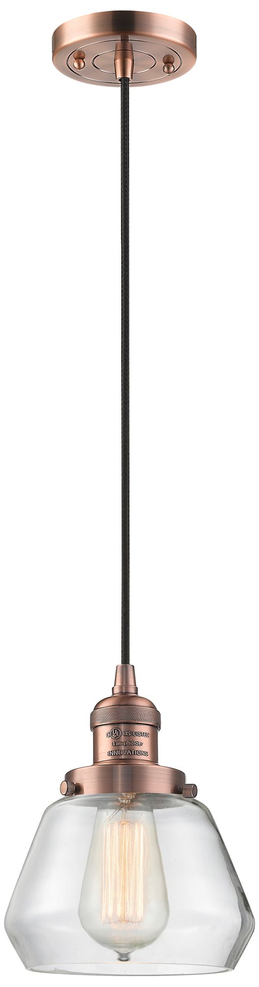 Fulton 7" Antique Copper Cord Hung Mini Pendant w/ Clear Shade