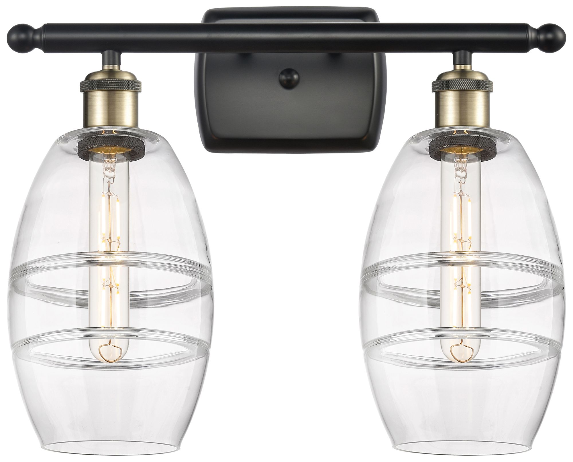 Ballston Vaz 15.88"W 2 Light Black Antique Brass Bath Light w/ Clear S