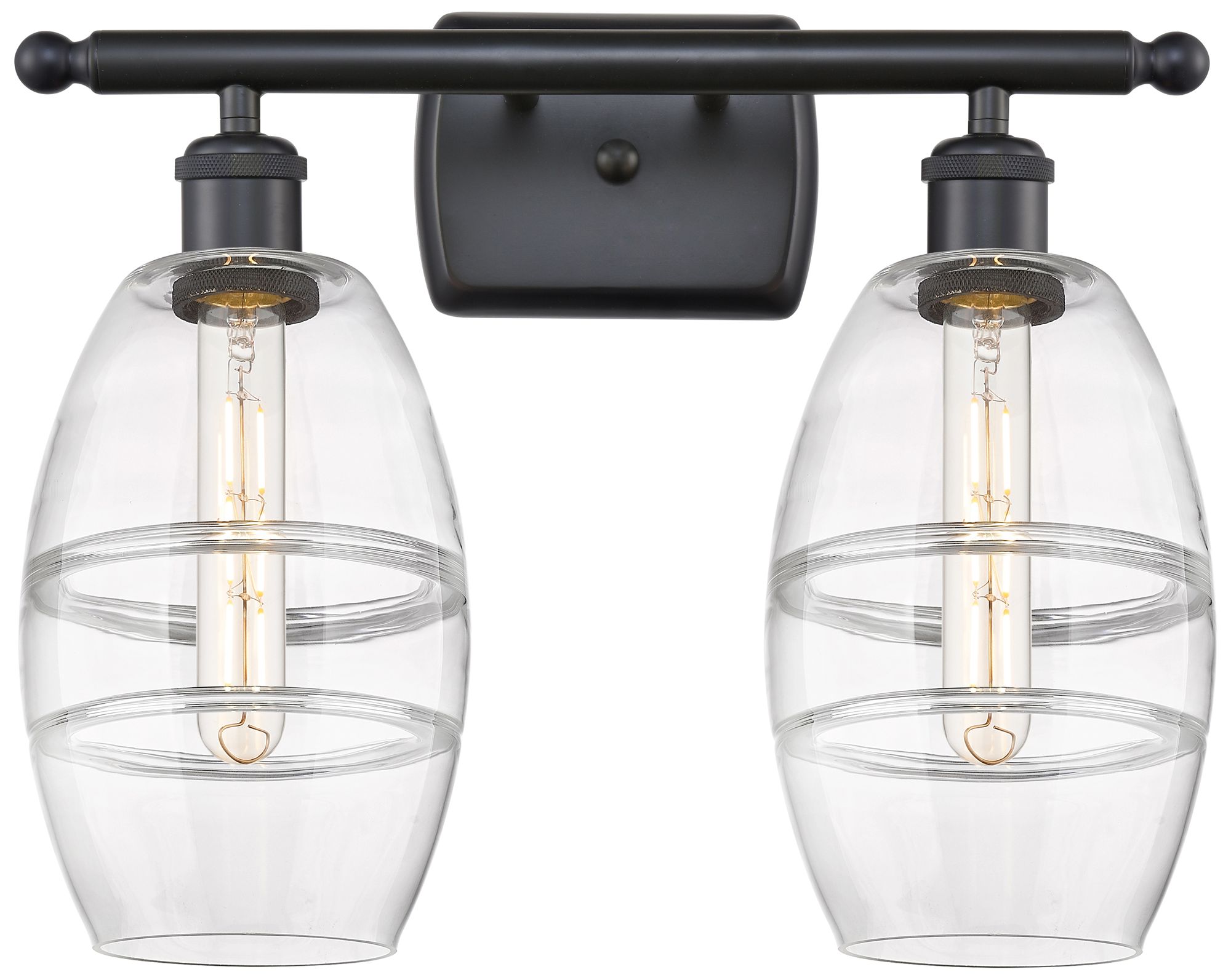 Ballston Vaz 15.88" Wide 2 Light Matte Black Bath Light With Clear Sha