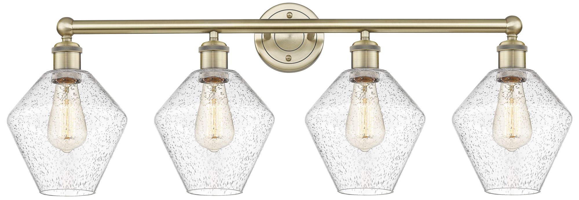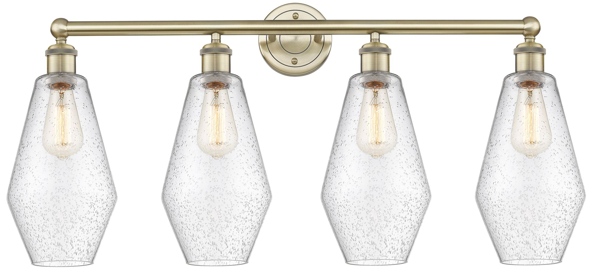 Cindyrella 34"W 4 Light Antique Brass Bath Vanity Light With Seedy Sha