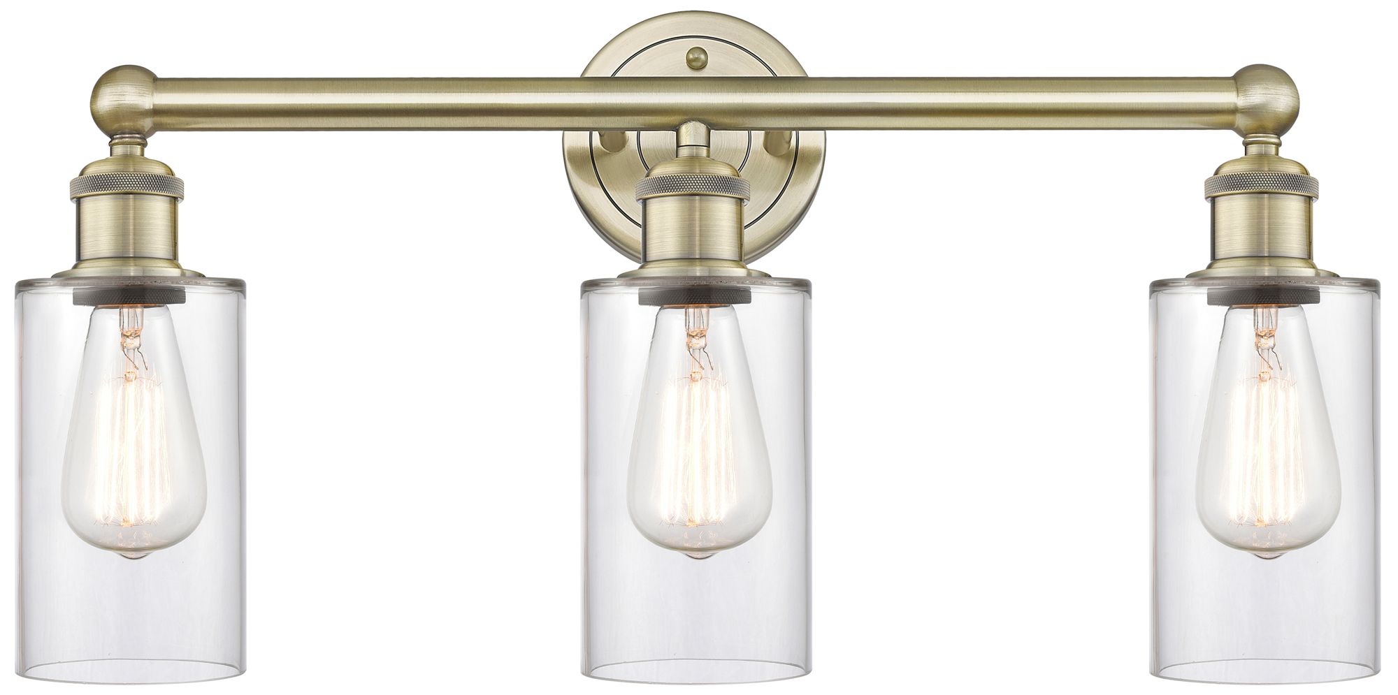 Clymer 21.88" Wide 3 Light Antique Brass Bath Vanity Light With Clear