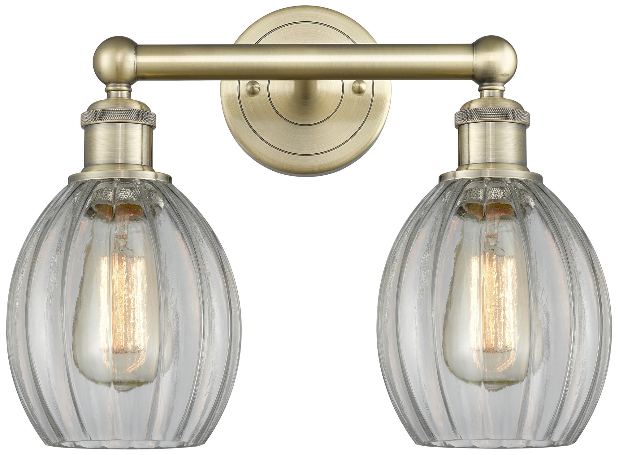 Eaton 14.5" Wide 2 Light Antique Brass Bath Vanity Light With Clear Sh