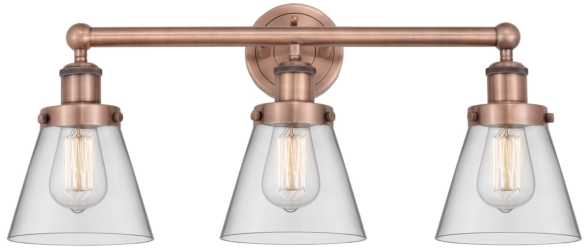 Edison Small Cone 24.5"W 3 Light Antique Copper Bath Light With Clear