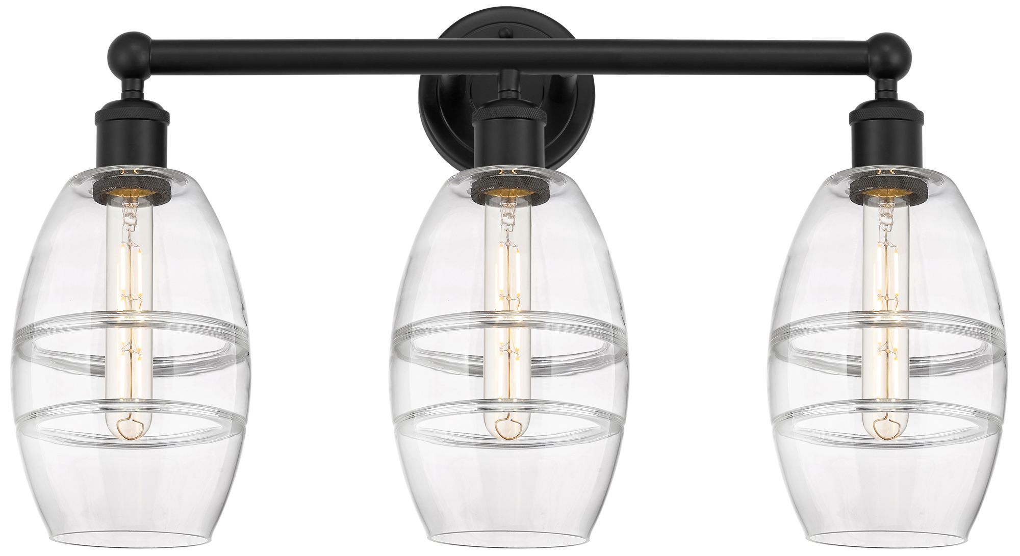 Edison Vaz 23.88" Wide 3 Light Matte Black Bath Light With Clear Shade