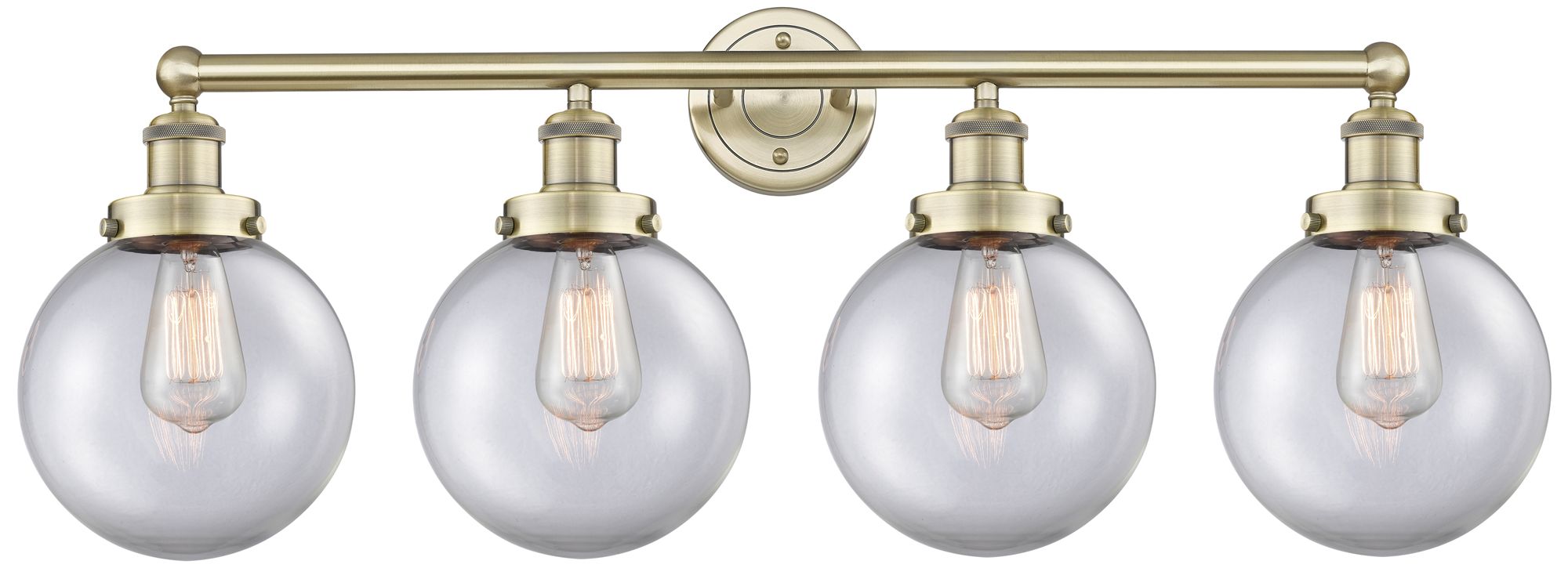 Large Beacon 33.5"W 4 Light Antique Brass Bath Light With Clear Shade