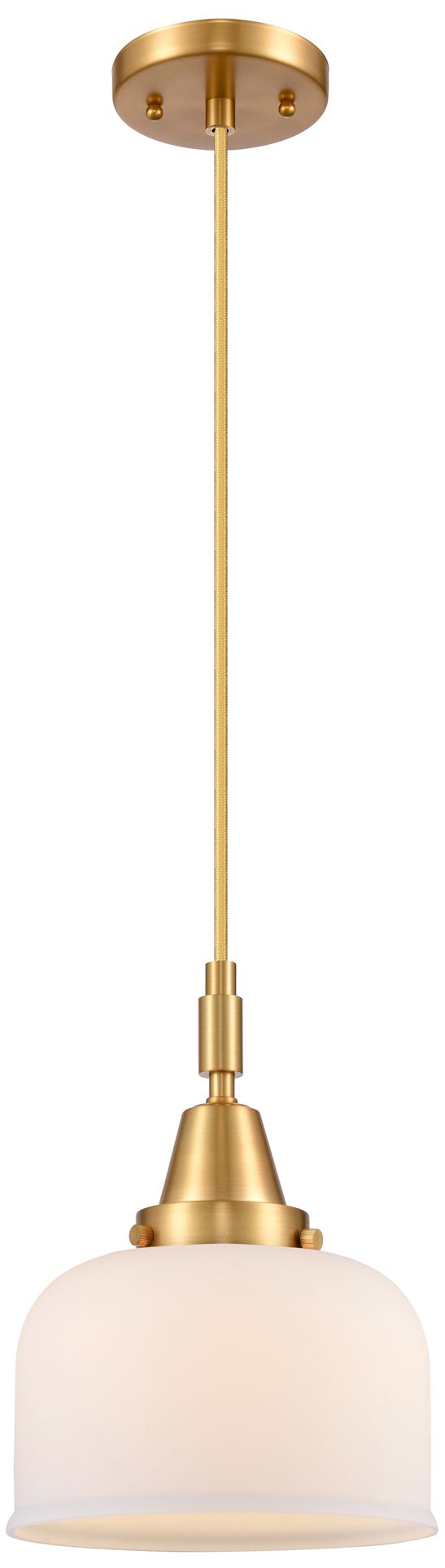 Bell 8" Wide Satin Gold Mini Pendant with Matte White Shade