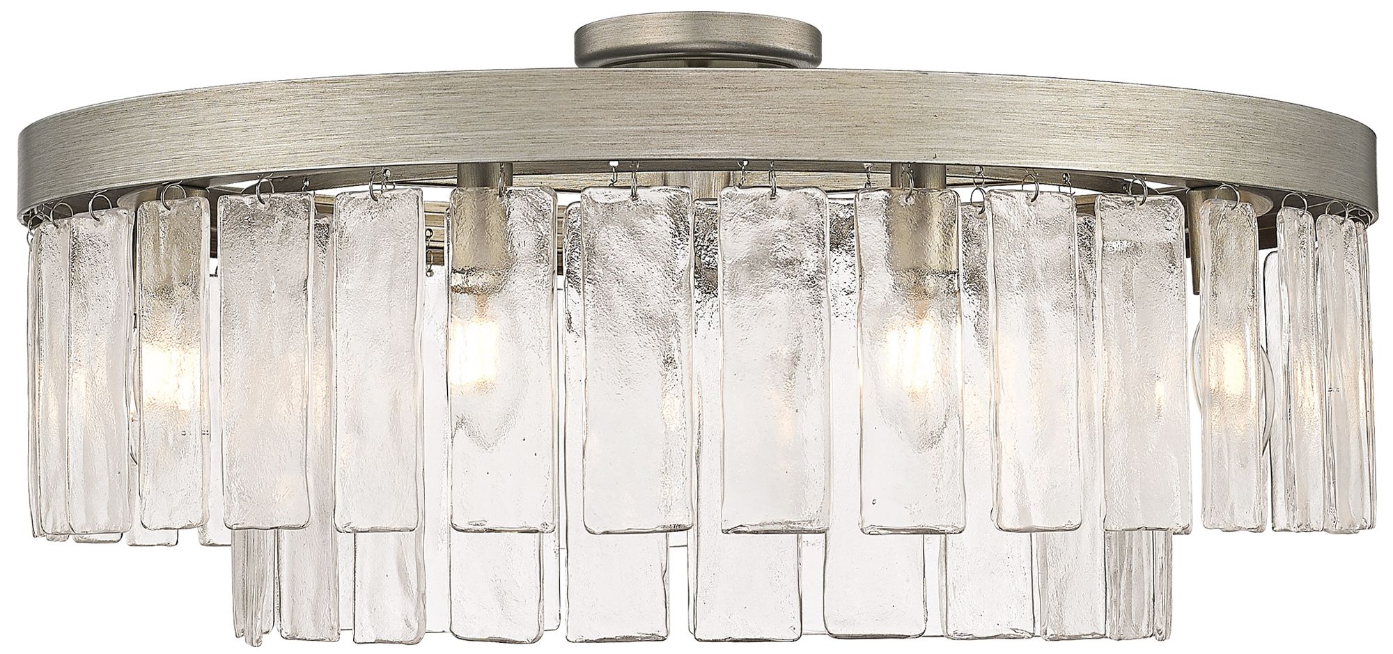 Hines 25 1/8" Wide Pewter 3-Light Semi-Flush With Seeded Glass
