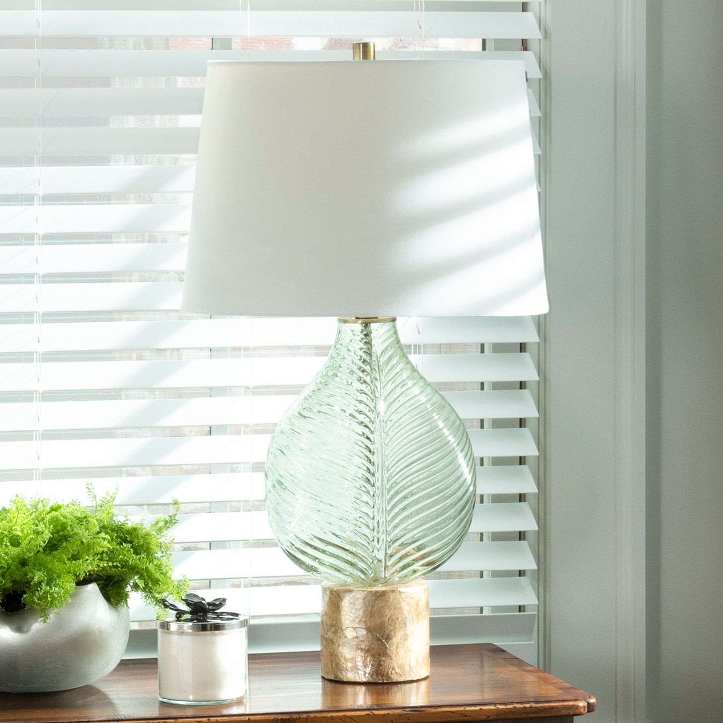 - Leaf coastal glass table lamp from Crestview Collection.