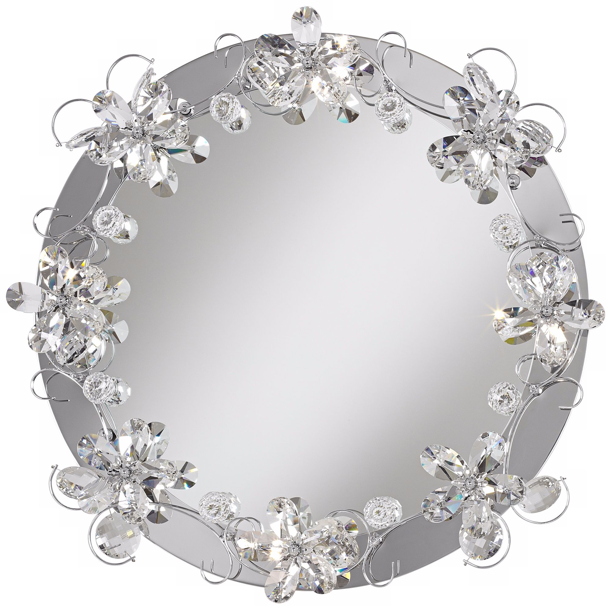 Crystal Petals 25 5/8" Lighted Round Wall Mirror