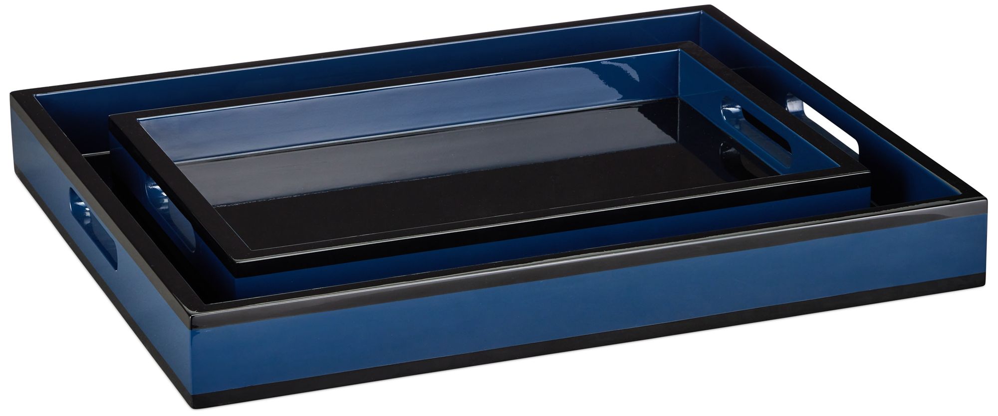 2_Currey & Company Navy Lacquer Tray Set of 2 more views