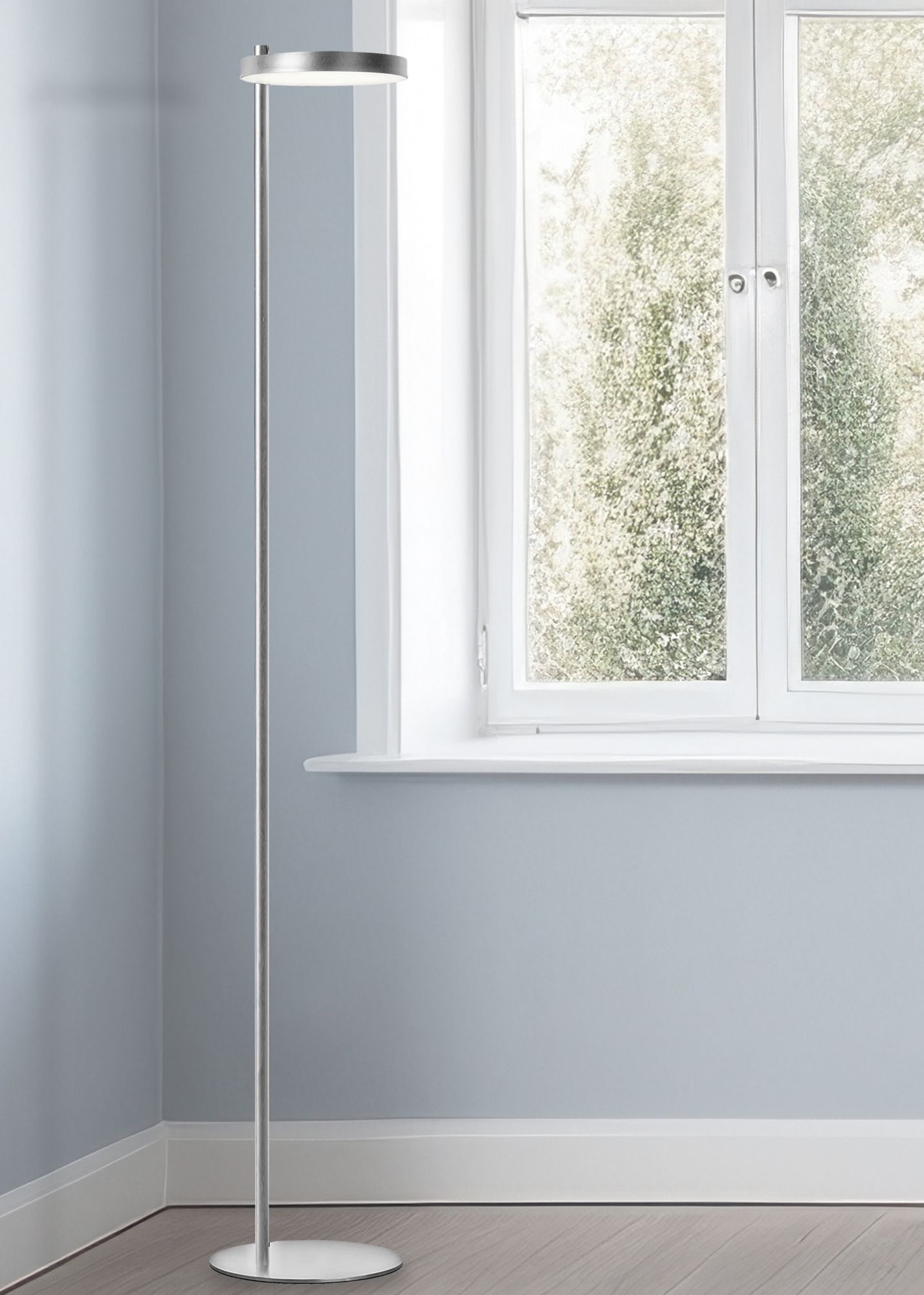 - Fia Satin Chrome Floor Lamp is produced by Dainolite Ltd..