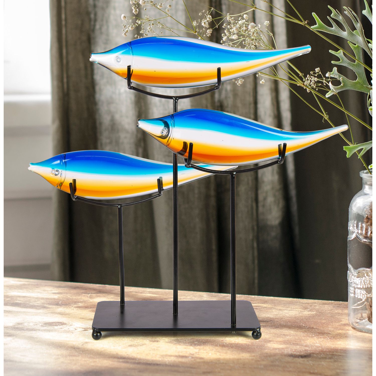 Dale Tiffany 13.5" Tall 3 Garfish Handcrafted Glass Sculpture with Stand
