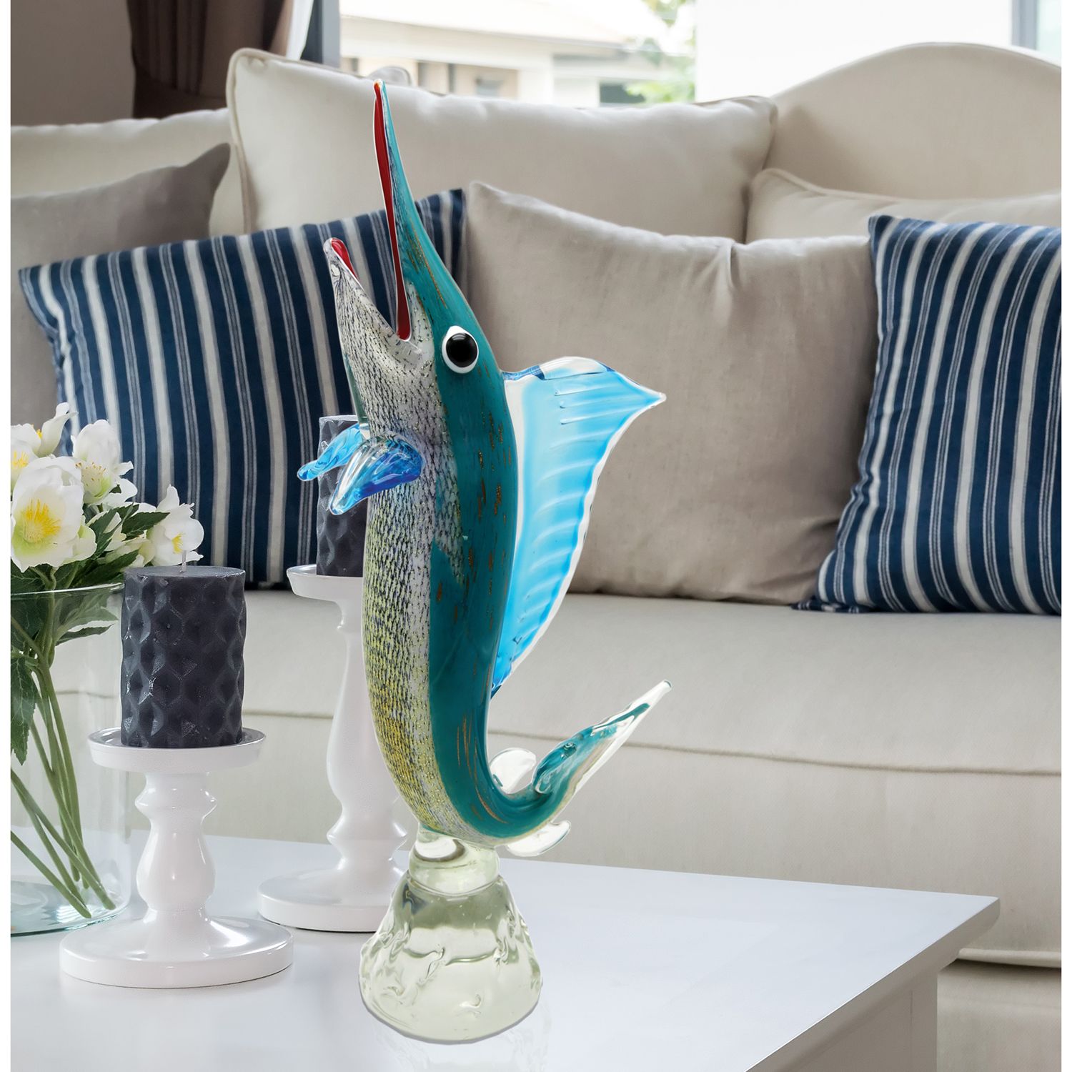 Dale Tiffany 22.5" Tall Marlin Handcrafted Art Glass Figurine
