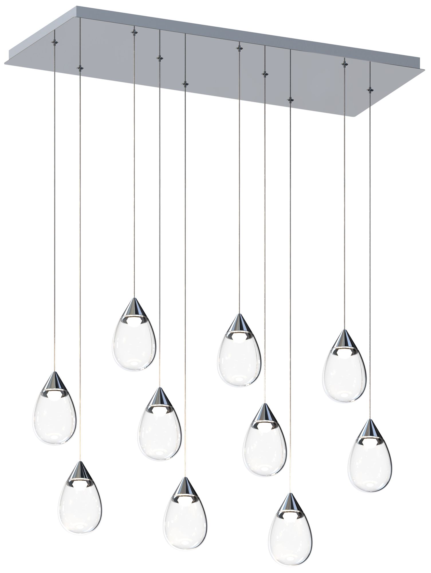 Drama and precision combine in this contemporary ten-light energy-efficient LED linear pendant, where tiered teardrops create a shimmering canopy of light. From the Dewdrop collection by ET2 Lighting, integrated LEDs keep the look sleek while delivering ample illumination. Stretch it over a long dining table or anchor a chic kitchen with showpiece sparkle.