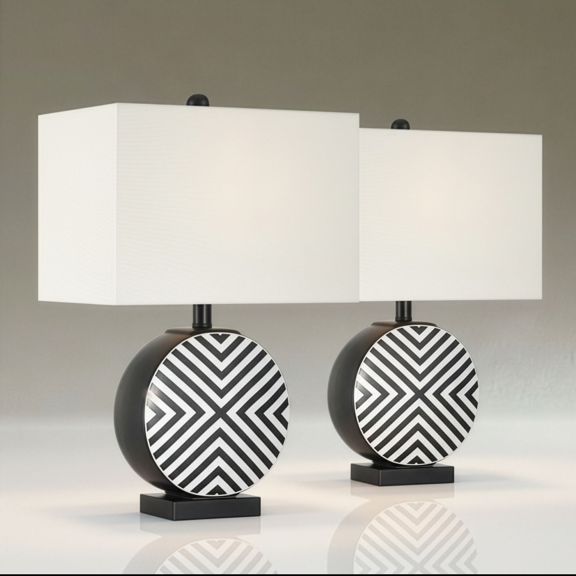 Fraser 21 1/2" Black and White Ceramic Disc Table Lamp Set of 2