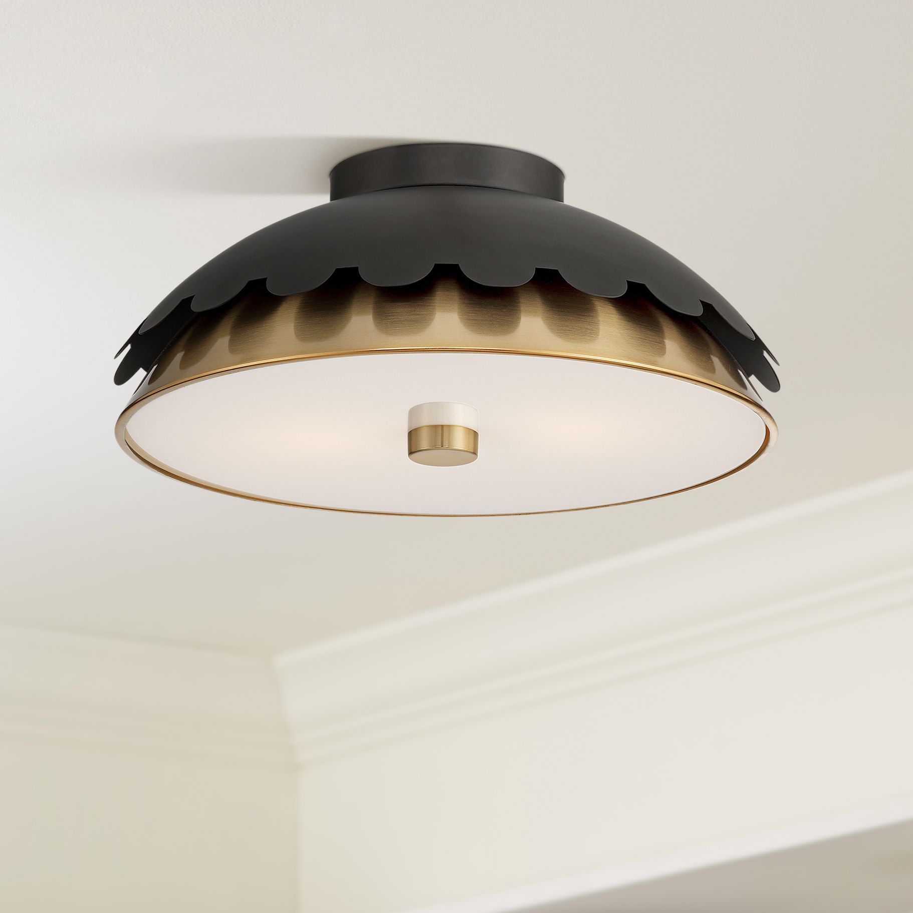 Possini Euro Calla 14" Wide Matte Black and Gold 2-Light Ceiling Light