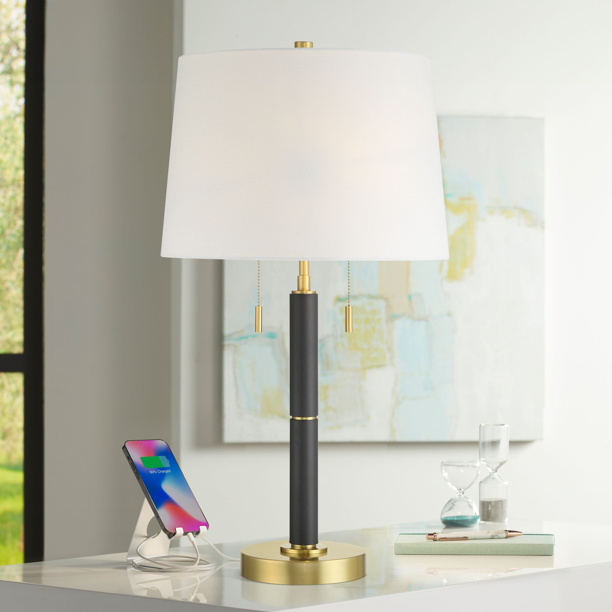 Pellana 26 1/4" High Matte Black and Brass USB Table Lamp