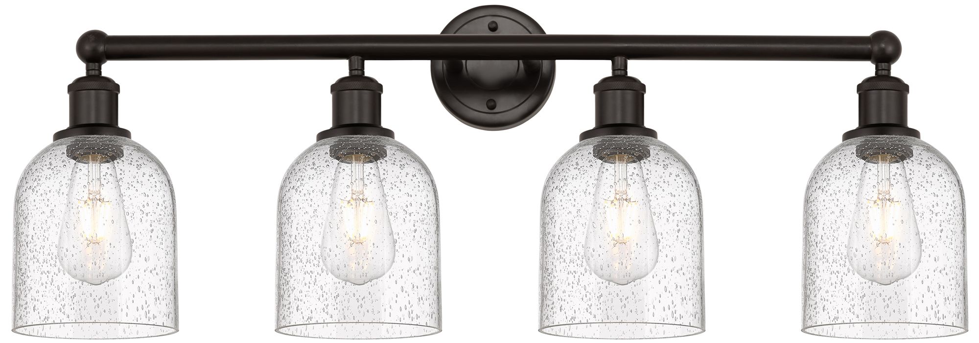 Edison Bella 32.5"W 4-Light Oiled Bronze Bath Vanity Light w/ Seedy Sh