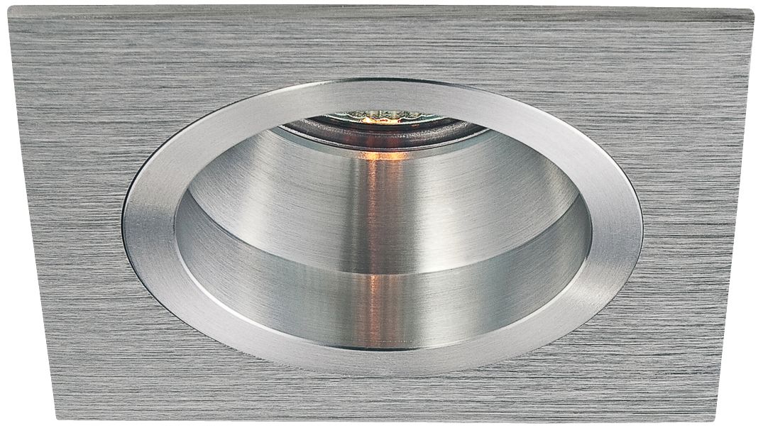 This sleek aluminum regressed square decorative trim is a great contemporary option for recessed lighting. The light source sits up from the heavily brushed aluminum square frame, inside a round soft-brushed aluminum body. This modern trim will beautify your decor for years to come. Works with compatible Eurofase Lighting housings.