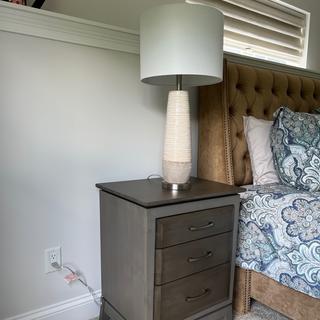 Featuring a subtle two-tone color scheme, this contemporary ceramic table lamp is an attractive fixture for a living room or bedroom. The gray and ivory body is embellished by a brushed silver base, neck, and finial. The white shade houses a three-way bulb (not included), making this fixture a beautiful and functional addition to a family room or office.