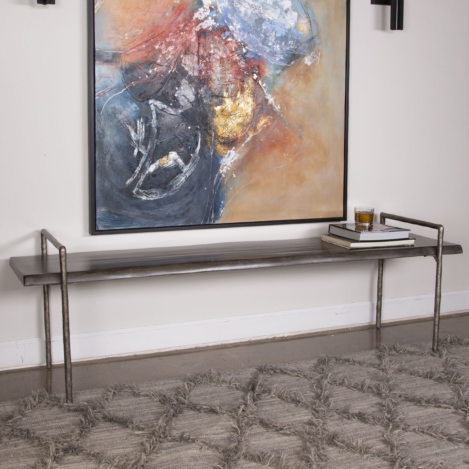 Chandos 76" Wide Tarnished Silver and Dark Gray Bench