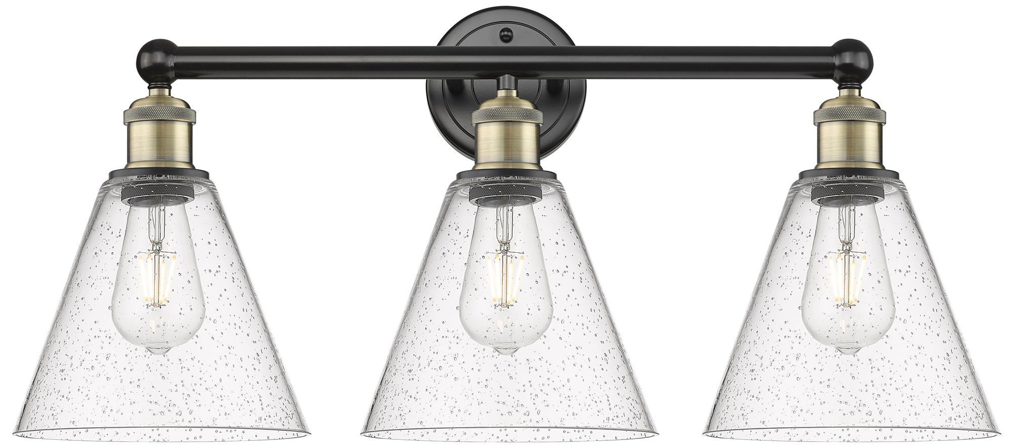Berkshire 26"W 3 Light Black Antique Brass Bath Light With Seedy Shade
