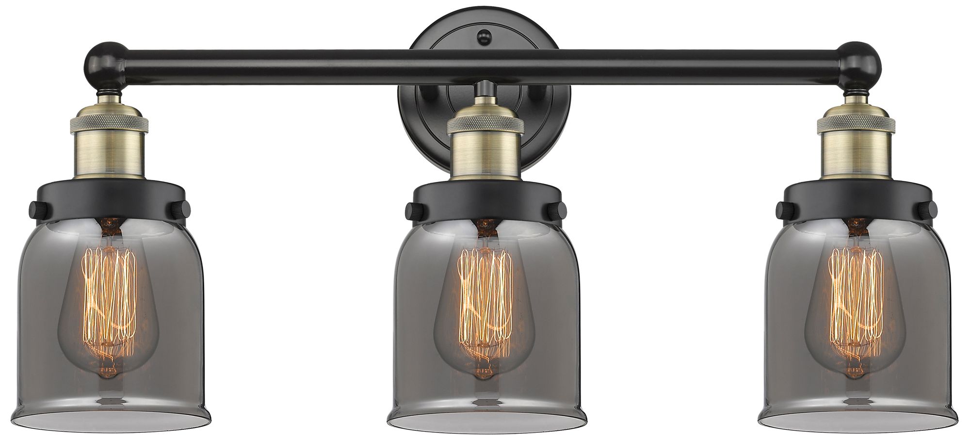 Edison Small Bell 24.5"W 3 Light Black Brass Bath Light With Smoke Sha