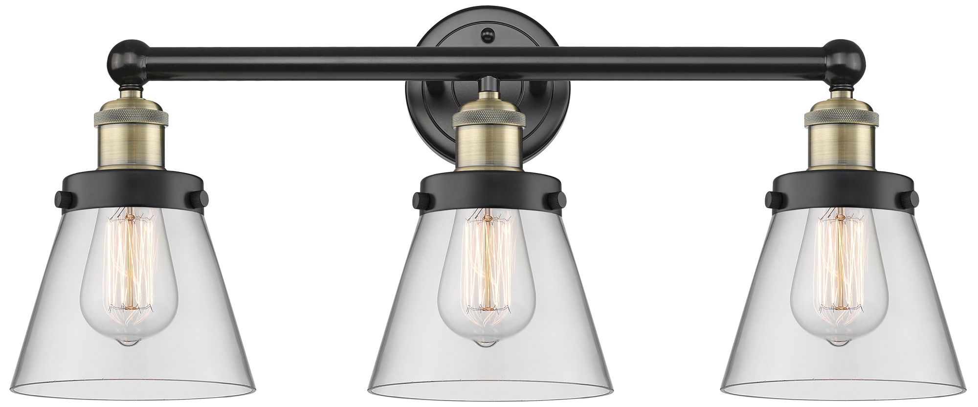 Edison Small Cone 24.5"W 3 Light Black Brass Bath Light With Clear Sha