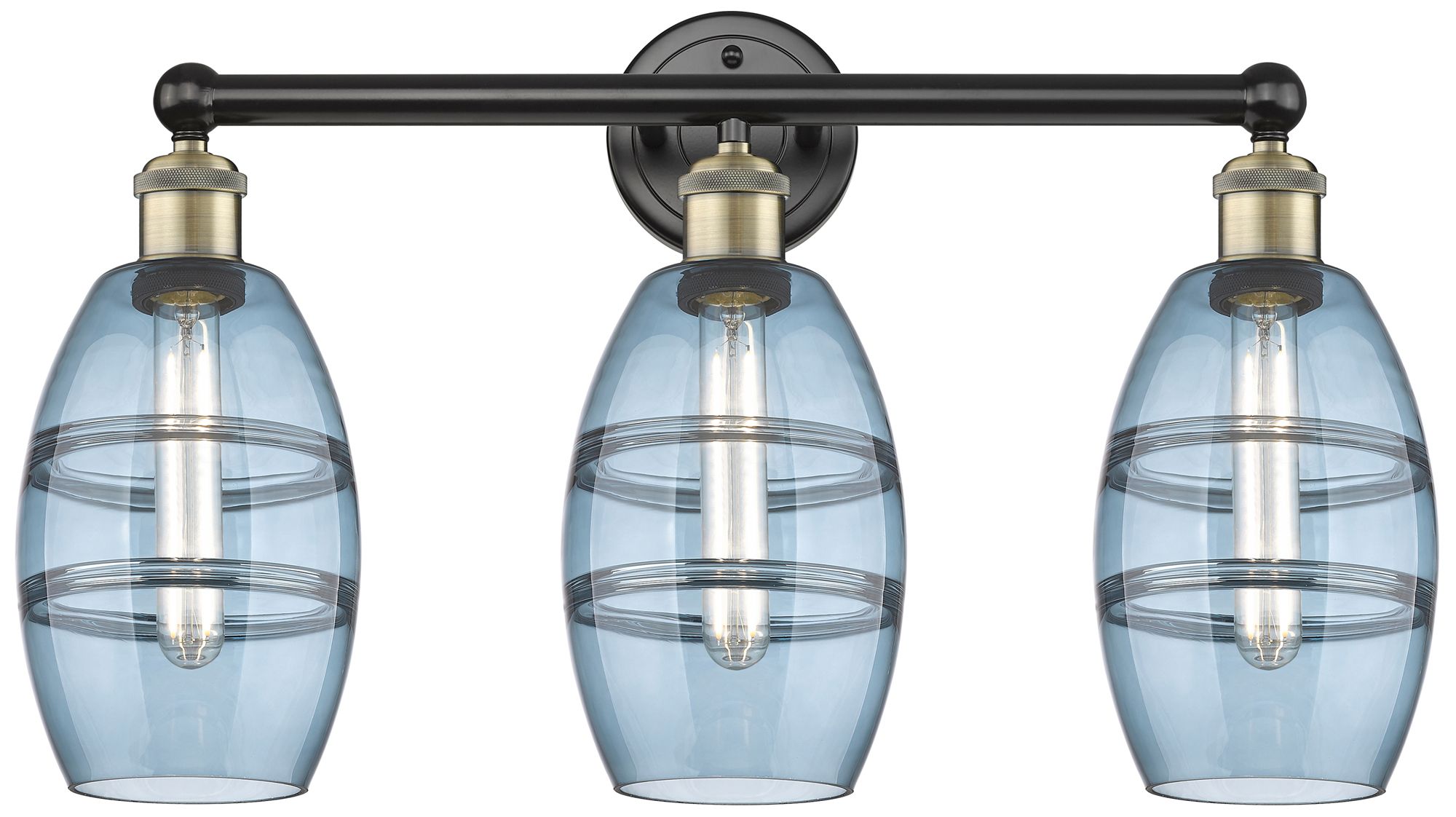 Edison Vaz 23.88"W 3 Light Black Antique Brass Bath Light w/ Blue Shad