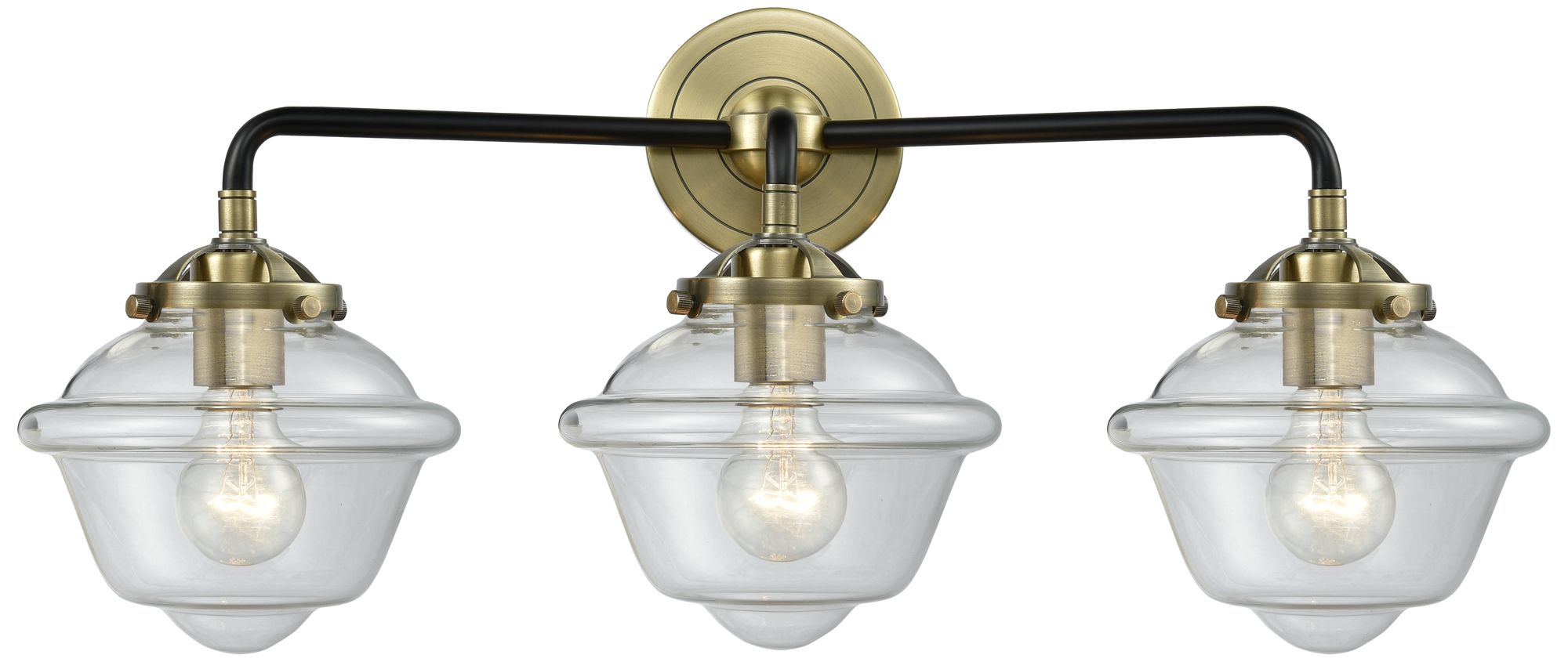 Bell 3 Light 30" Bath Light - Black Antique Brass - Clear Shade