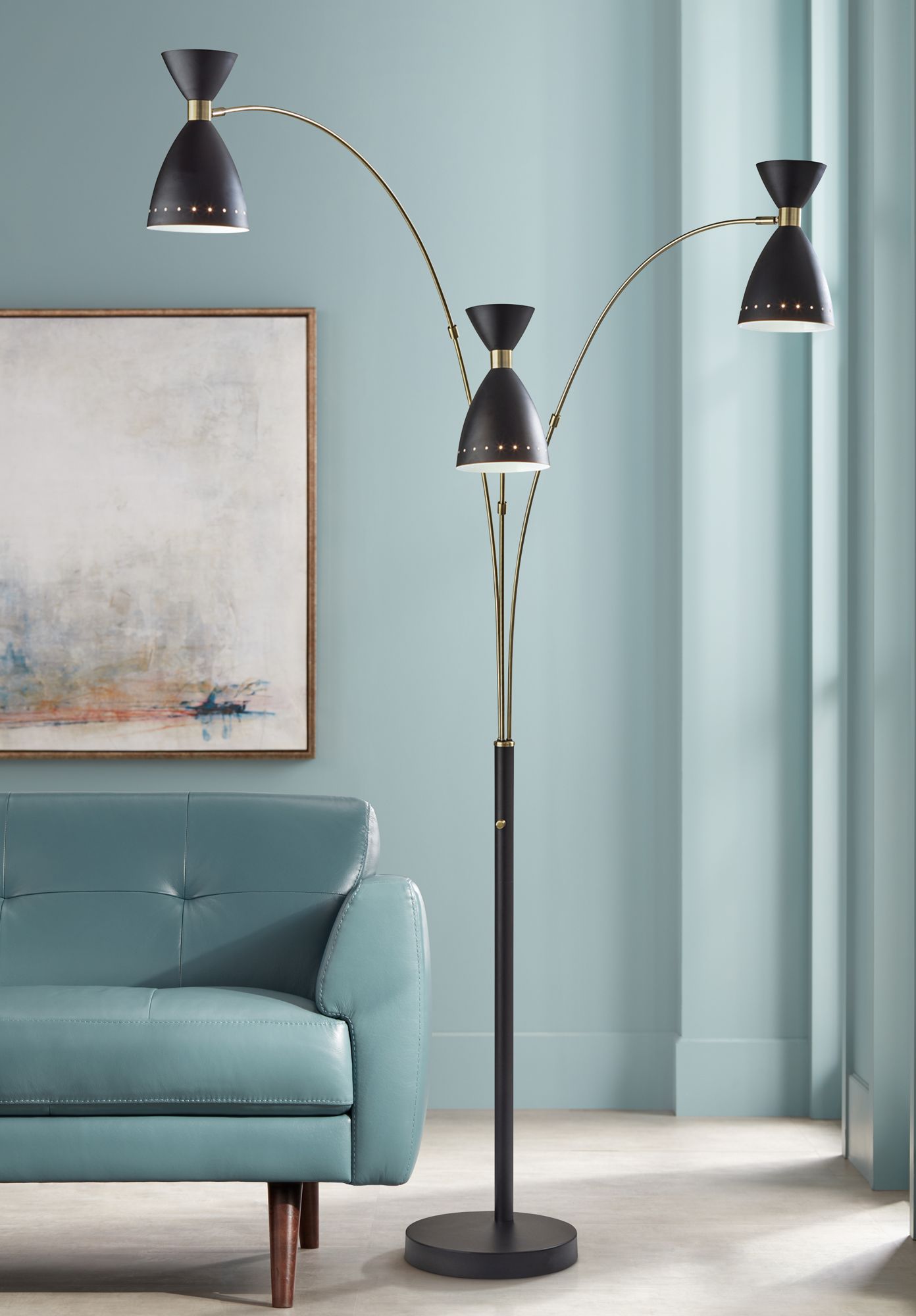 Adesso Oscar 82" High Black and Antique Brass 3-Arm Arc Floor Lamp