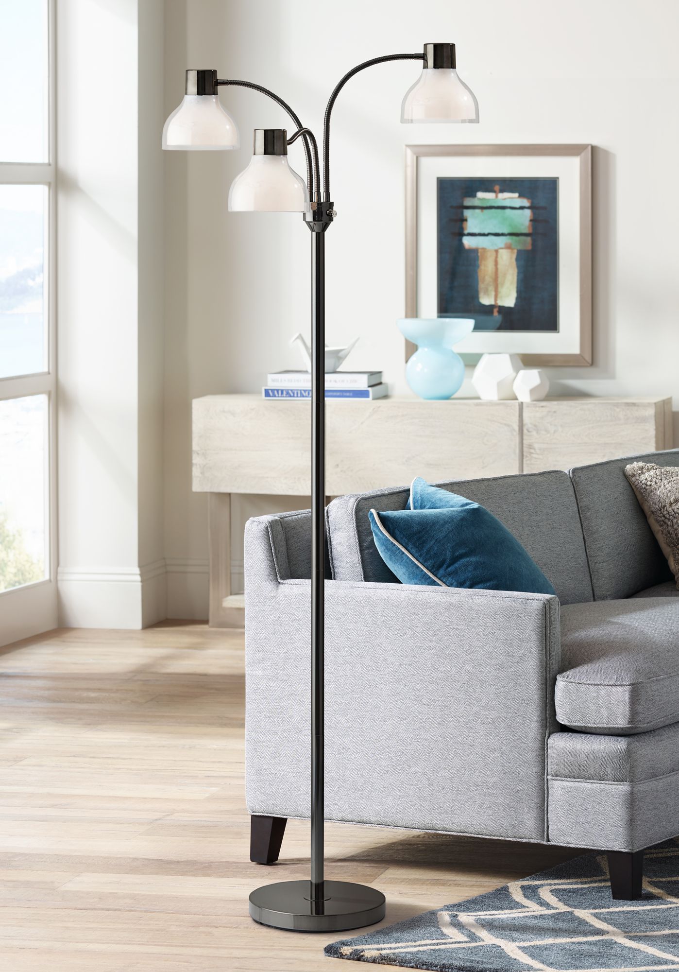 Adesso Presley 69" Black Nickel Metal 3-Arm Gooseneck Floor Lamp