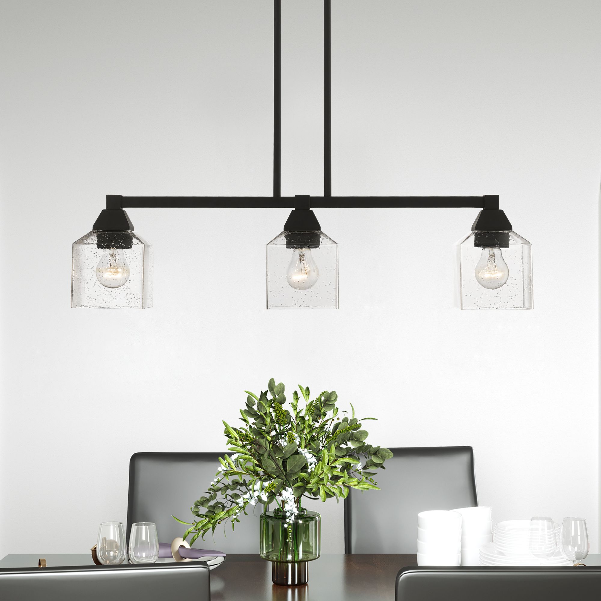 Aragon 30"W Black 3-Light Linear Chandelier w/ Seeded Glass
