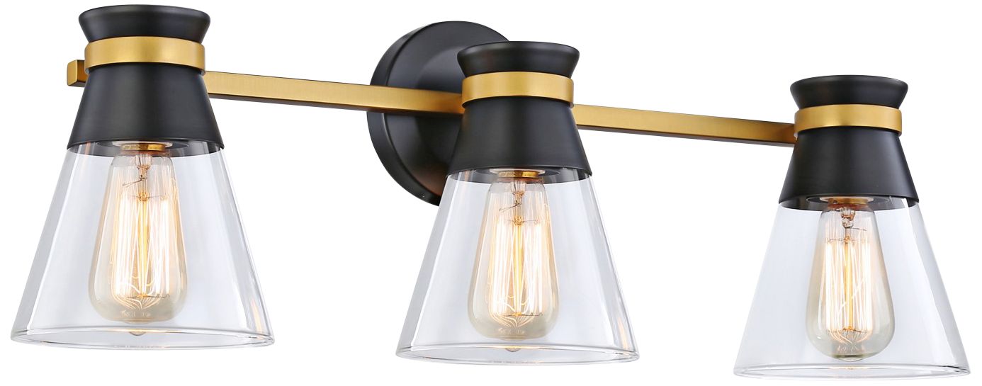 Varaluz Allie 25" Wide 3-Light Black and Satin Brass Vanity Light