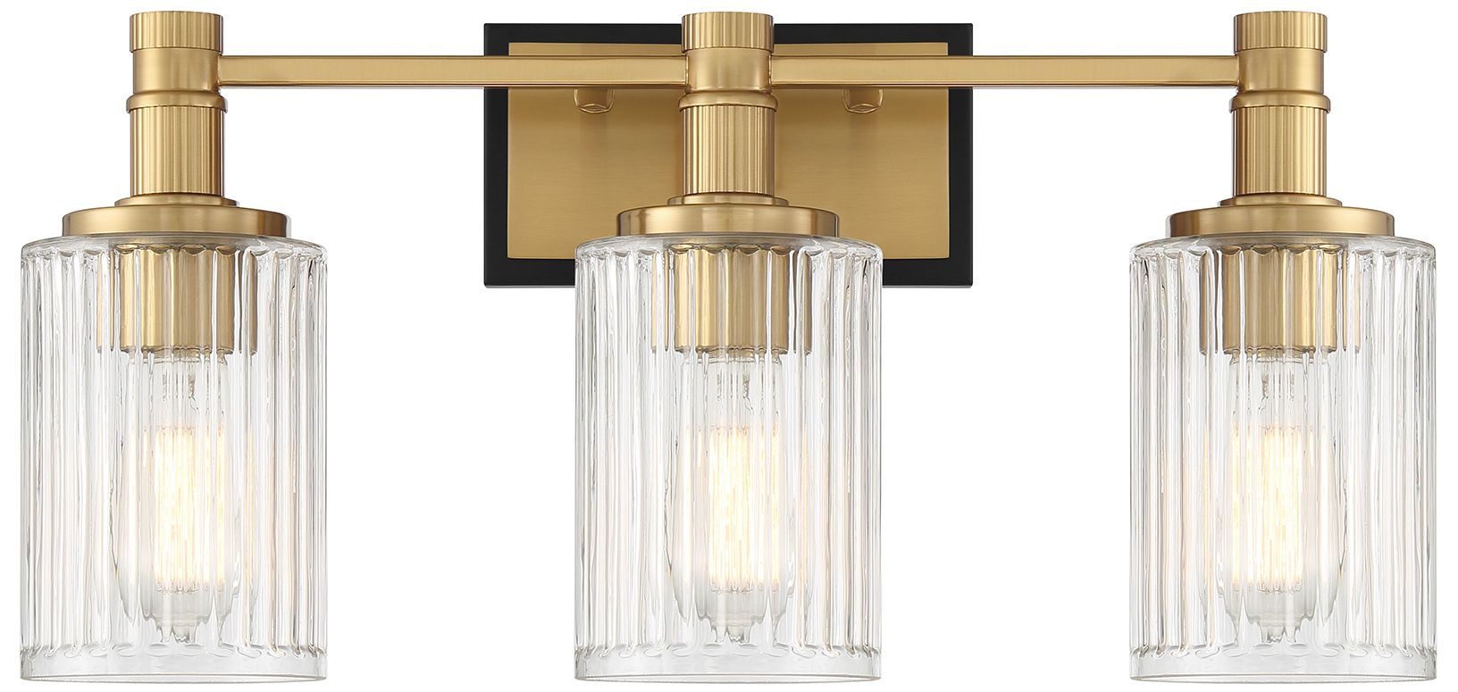 Saunders 23" Wide Black and Brass 3-Light Bath Light
