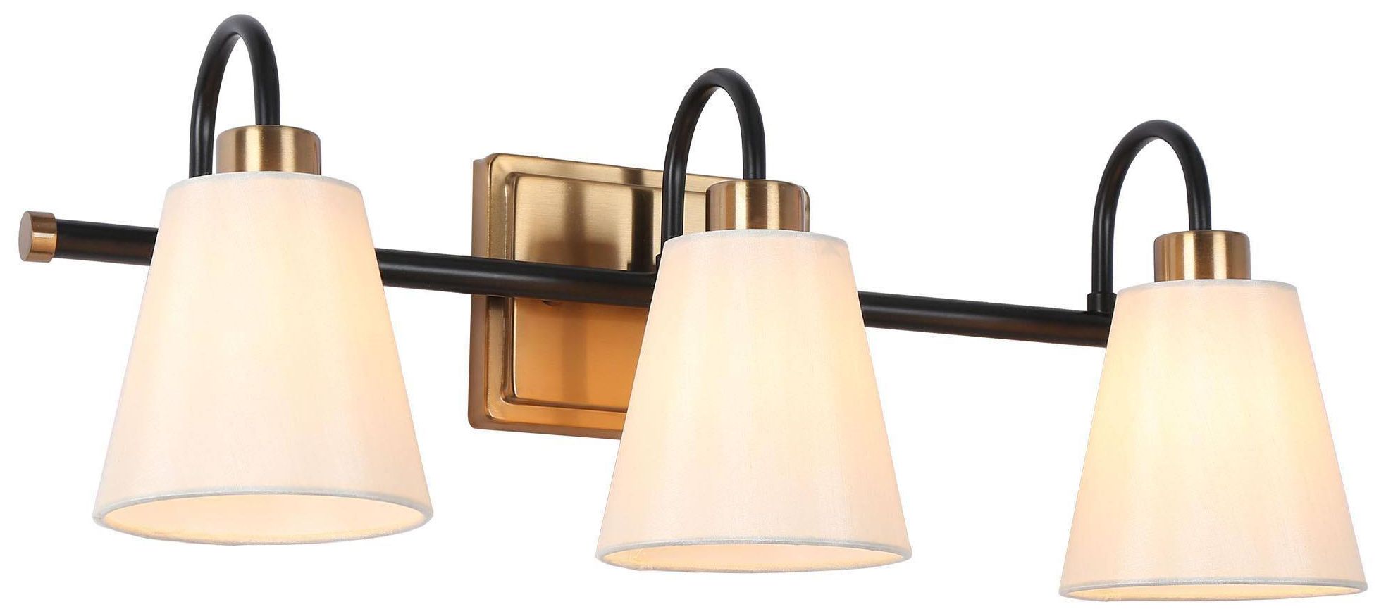 Ryden 22 1/2"W Brass Gold 3-Light Bath Light w/ Black Shade