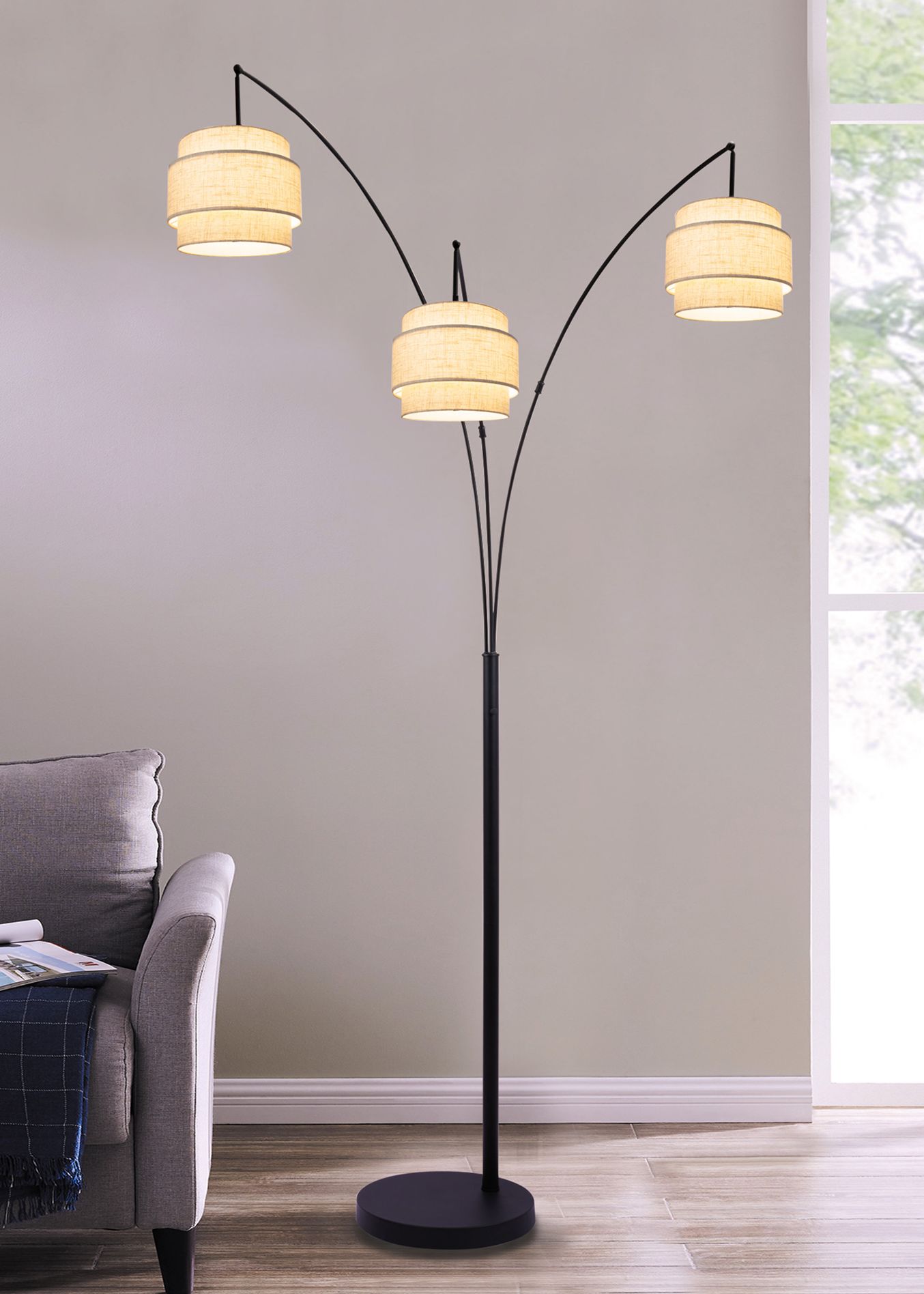 Lite Source Molina Black 3-Light Art Glass Arc Floor Lamp