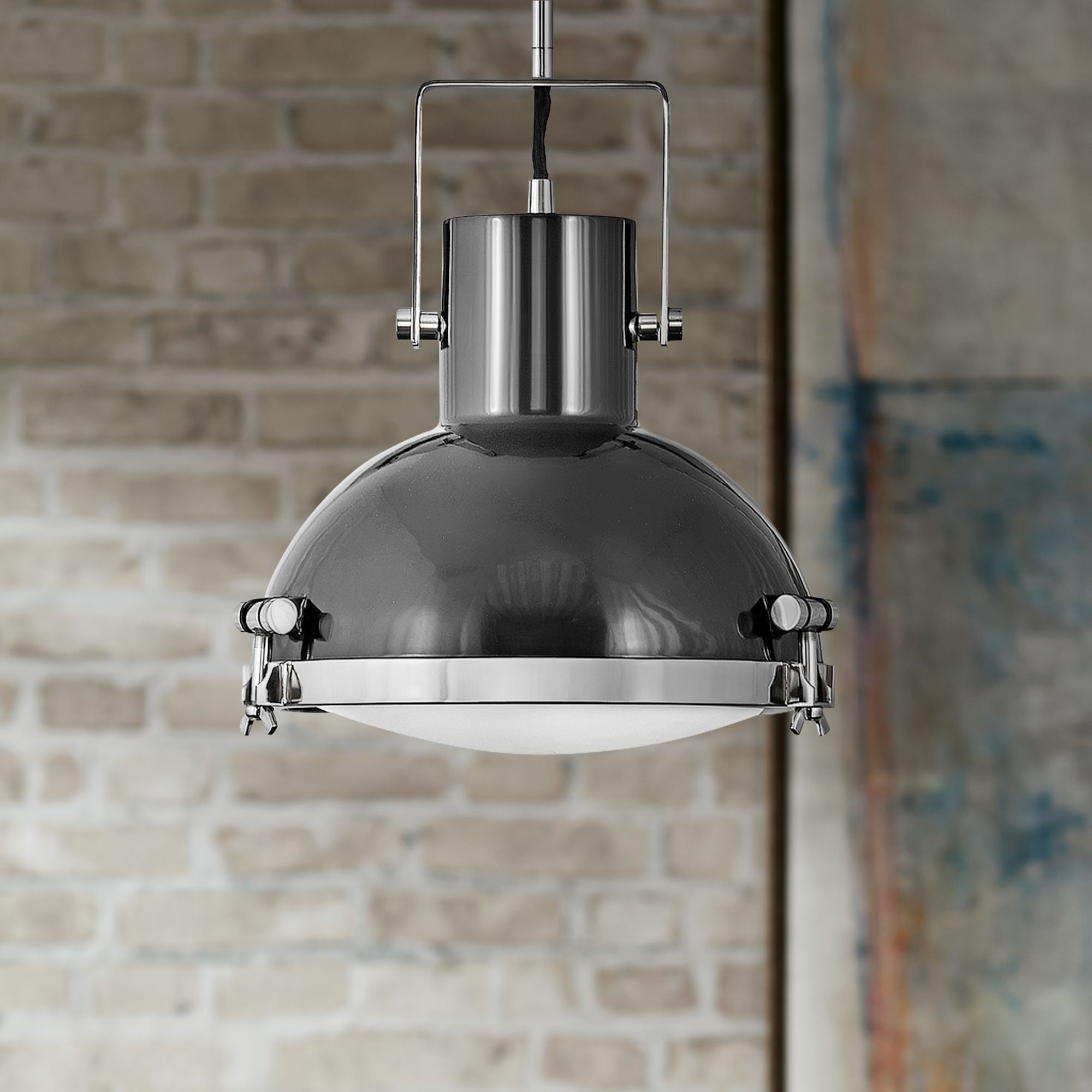 Nautique 13"W Polished Nickel and Gloss Back Pendant Light