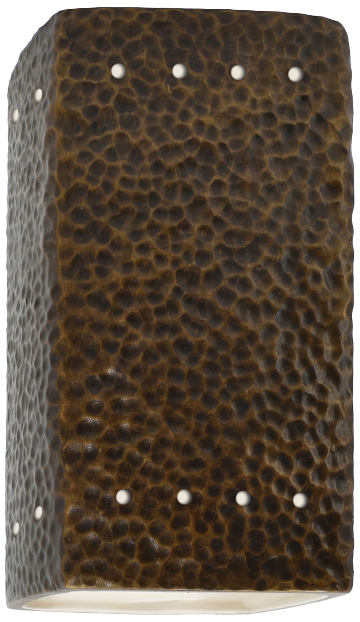 Ambiance 9 1/2"H Hammered Brass Perfs Rectangle Wall Sconce