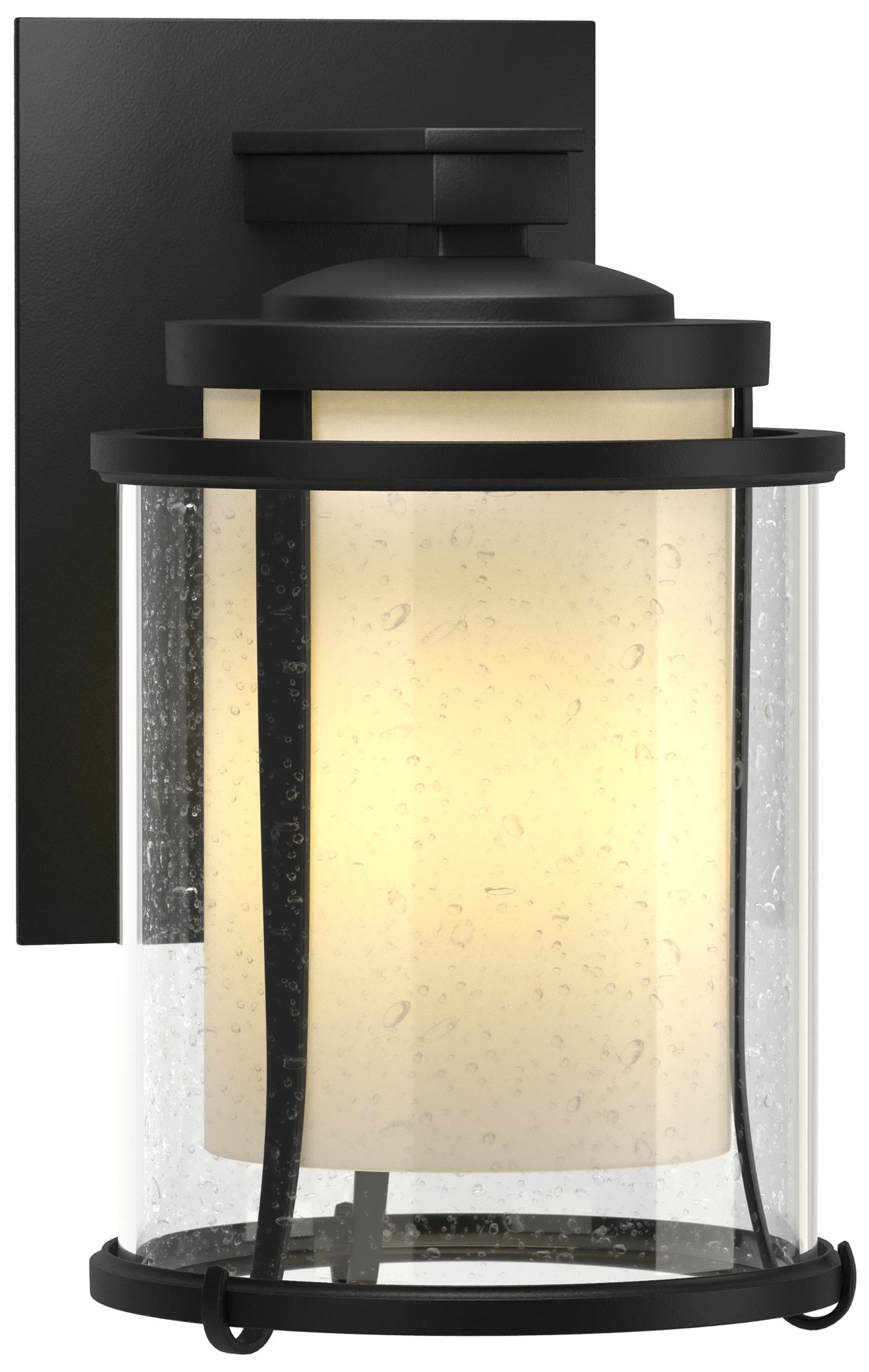 Meridian 10.3"H Small Black Outdoor Sconce w/ Opal and Seeded Glass Sh