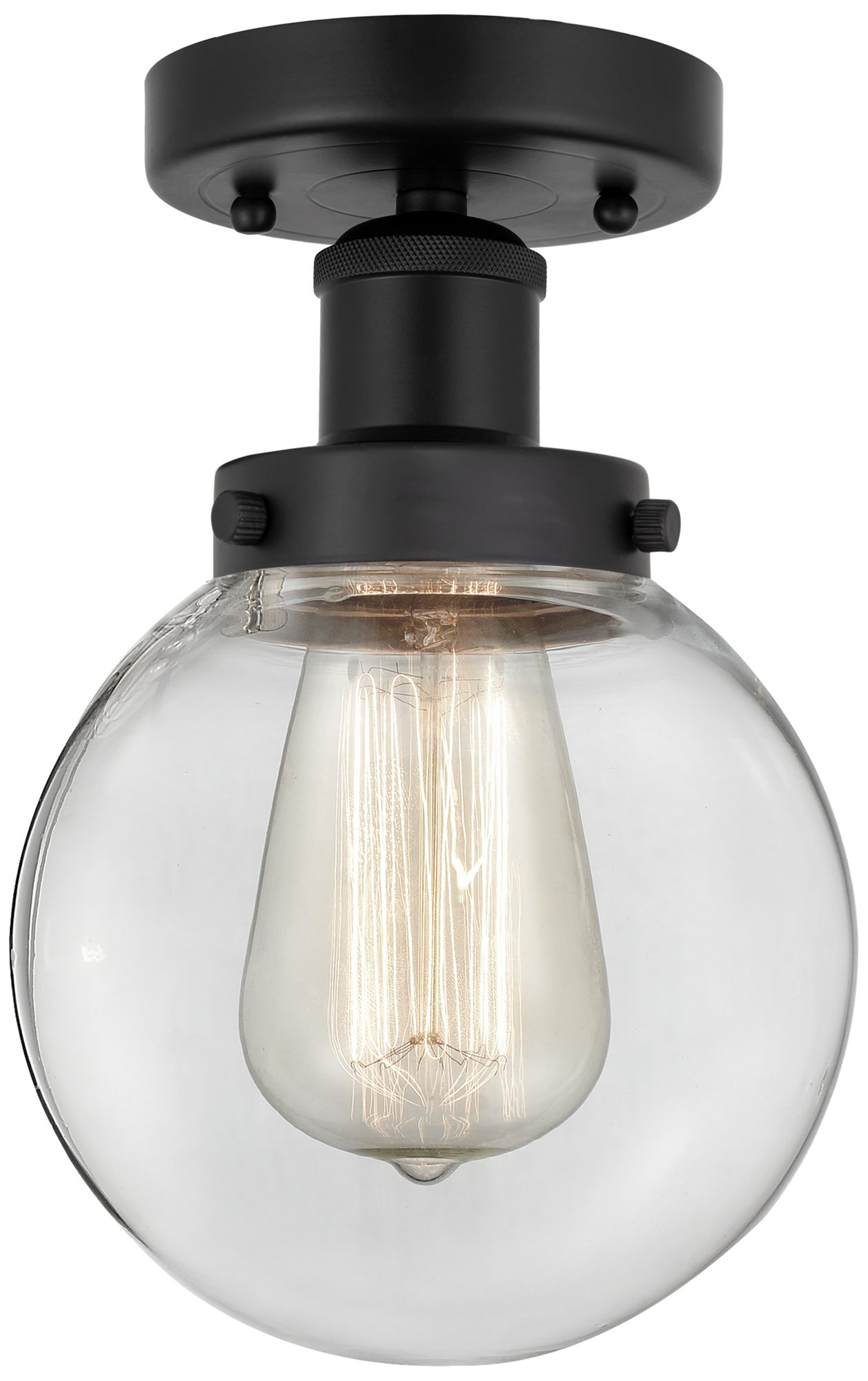 Edison Beacon 6" Wide Matte Black Globe Ceiling Light
