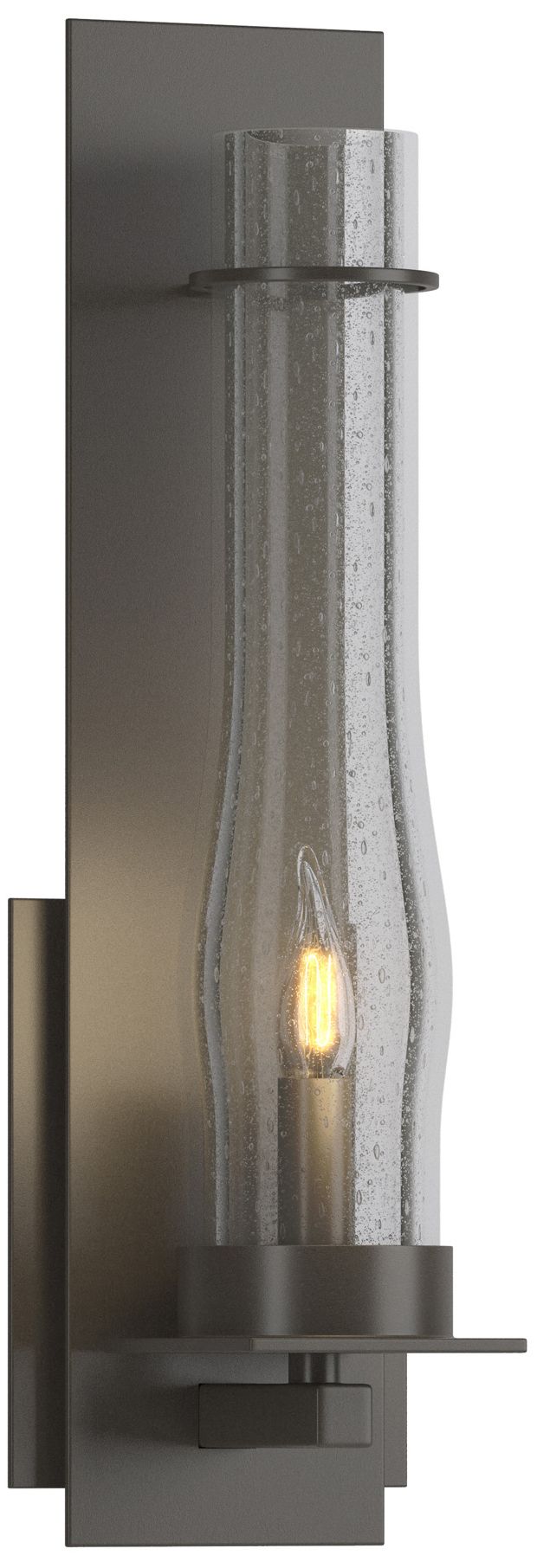New Town 17.8" High Dark Smoke and Seeded Clear Glass Hurricane Sconce